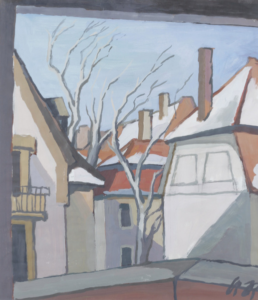 Diese Darstellungsweise erinnert an die Fauves, einer Bewegung, die sich in Frankreich zwischen 1896 und 1906 entwickelte. Deren Vertreter Henri Matisse, Albert Marquet und André Derain, die auch Paul Cézanne als Vorbild hatten, vernachlässigten in ihren Bildern die Plastizität und die Raumwirkung ebenso wie sie das Bildganze mit nebeneinerdesetzten großen Flächen gestalteten. Der Bildraum ist flächig durch die Reduzierung von drei auf zwei Bildebenen, was bei Albert Rieger auch durch das Heranrücken des Hintergrunds und der Anordnung von großen Formen im Vordergrund verwirklicht wird. Eine Verflachung des Bildraums wird deutlich.